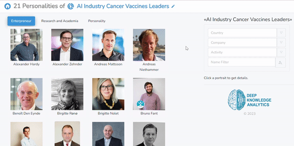 Global AI Ecosystem is a subsidiary of Deep Knowledge Group, a data-driven consortium of commercial and non-profit organizations active on many fronts in the realm of DeepTech and Frontier Technologies (AI, Longevity, BioTech, Pharma, FinTech, GovTech, SpaceTech, FemTech, Data Science, InvestTech), ranging from scientific research to investment, entrepreneurship, analytics, consulting, media, philanthropy and more.